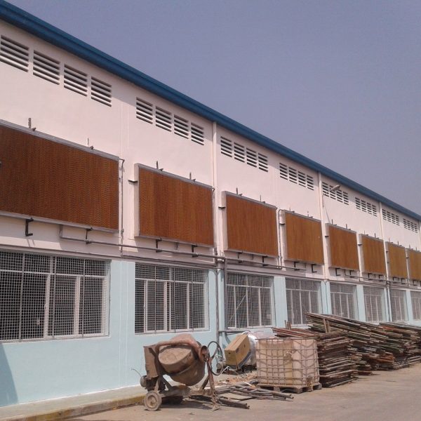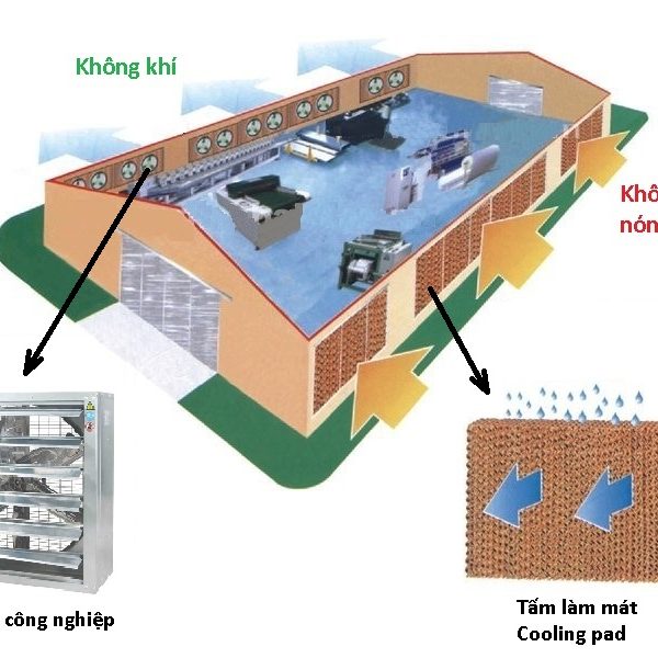 – Làm mát xưởng may (Tấm giấy làm mát coling pad:Cooling pad, Evaporative Ventilator)