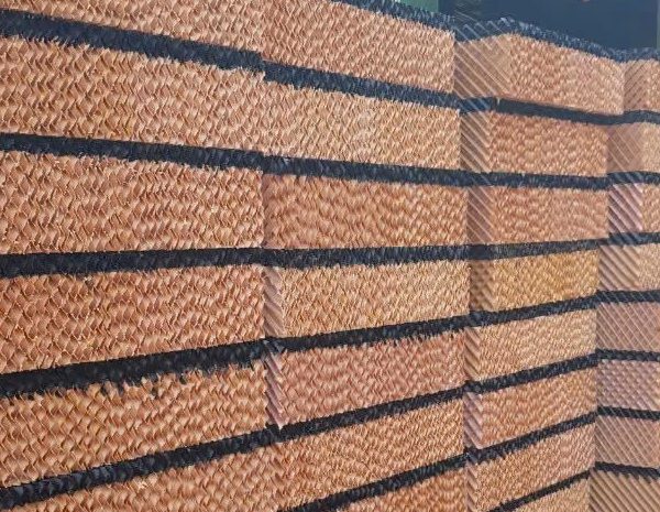 Hệ thống làm mát bằng tấm cooling pad được sản xuất, thiết kế từ giấy ép với keo nhằm tạo thành tấm làm mát chịu nước bền. Hiện nay, tấm làm mát được thiết kế dạng tổ ong đặc biệt giúp tăng hiệu suất làm mát không khí cao hơn diện tích làm mát thông thường.